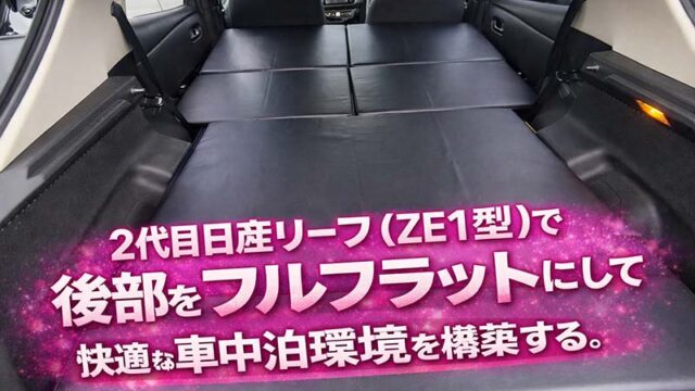 2代目日産リーフ(ZE1型)で後部をフルフラットにして快適な車中泊環境を構築する。
