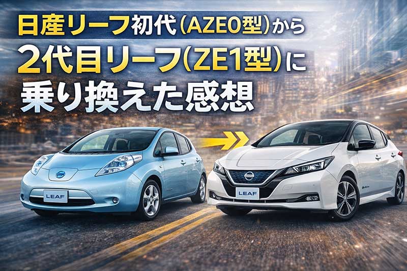 ZE1が最初に発売されたのは2017年です。ZE0型が2012年発売なので5年後にZE1型が発売されて8年後に後継機(ZE2)が発売されたことになります。期間がこれだけ開いたということはそれだけZE1型の出来が良かったということだと思います。約8年前の電気自動車のバッテリーの劣化状況、当時とは変わった充電環境を考えると中古価格の下がったZE1型の記事も書く意味があるのではないかと思いました。