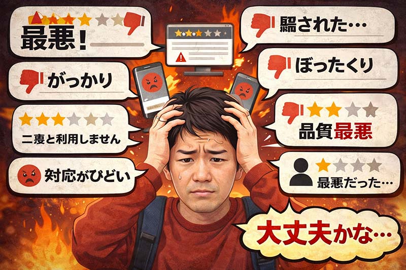 これらの理由で疑っているのだと思います。高評価に関しては薄っぺらい感想、低評価の口コミは怒りが伝わってくるほどリアルな書き込みです。私も個人的な見解ですが少なからず高評価の口コミに従業員が関与しているのではないかと疑っています。下記が低評価の口コミです。。