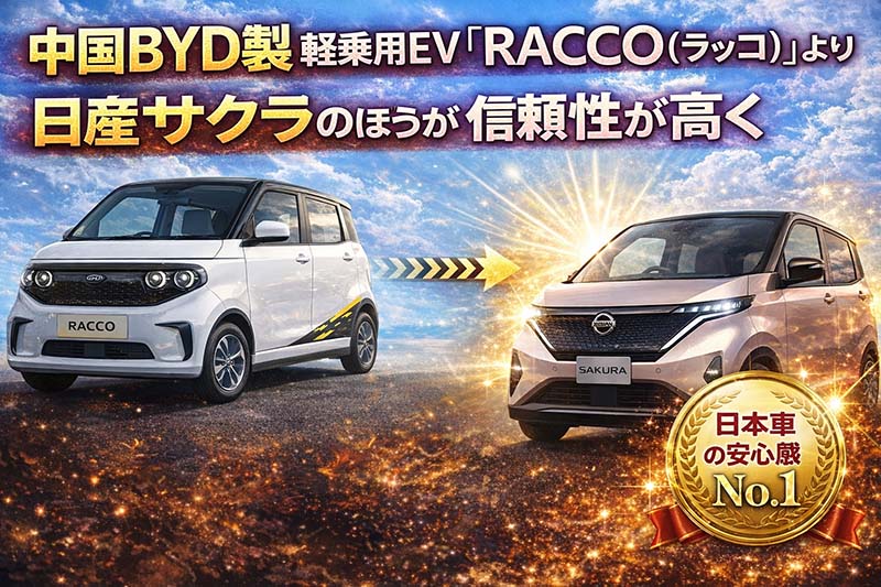中国BYD製 軽乗用EV「RACCO(ラッコ)」より日産サクラのほうが信頼性が高く安全でおススメだと思う理由