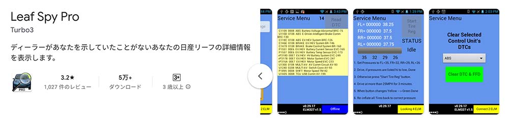 Androidの場合は以下からインストールが可能です。https://play.google.com/store/search?q=leafspy&c=apps&hl=ja