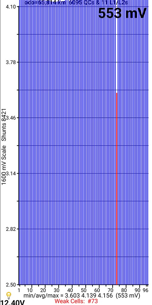 電位差が大きく不具合が起きた車両の報告がいくつも上がっています。特に電気自動車は故障の際に高額になりやすいので特に注意が必要です。上記の写真の場合は1セルが不具合を起こしており突然バッテリーが電欠したりする可能性がある状態です。