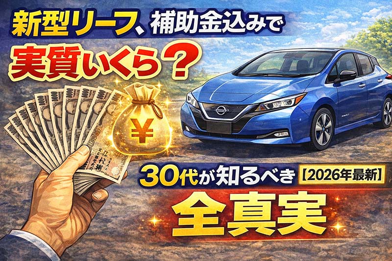新型日産リーフ(3代目・2026年モデル)に補助金を最大限に組み合わせると、実質負担額が300万円台前半になるケースが現実に存在しています。月々のガソリン代が消え、税制優遇も受けられる。30代の「現実的な選択肢」として、新型リーフは今がいちばん買い時かもしれません。